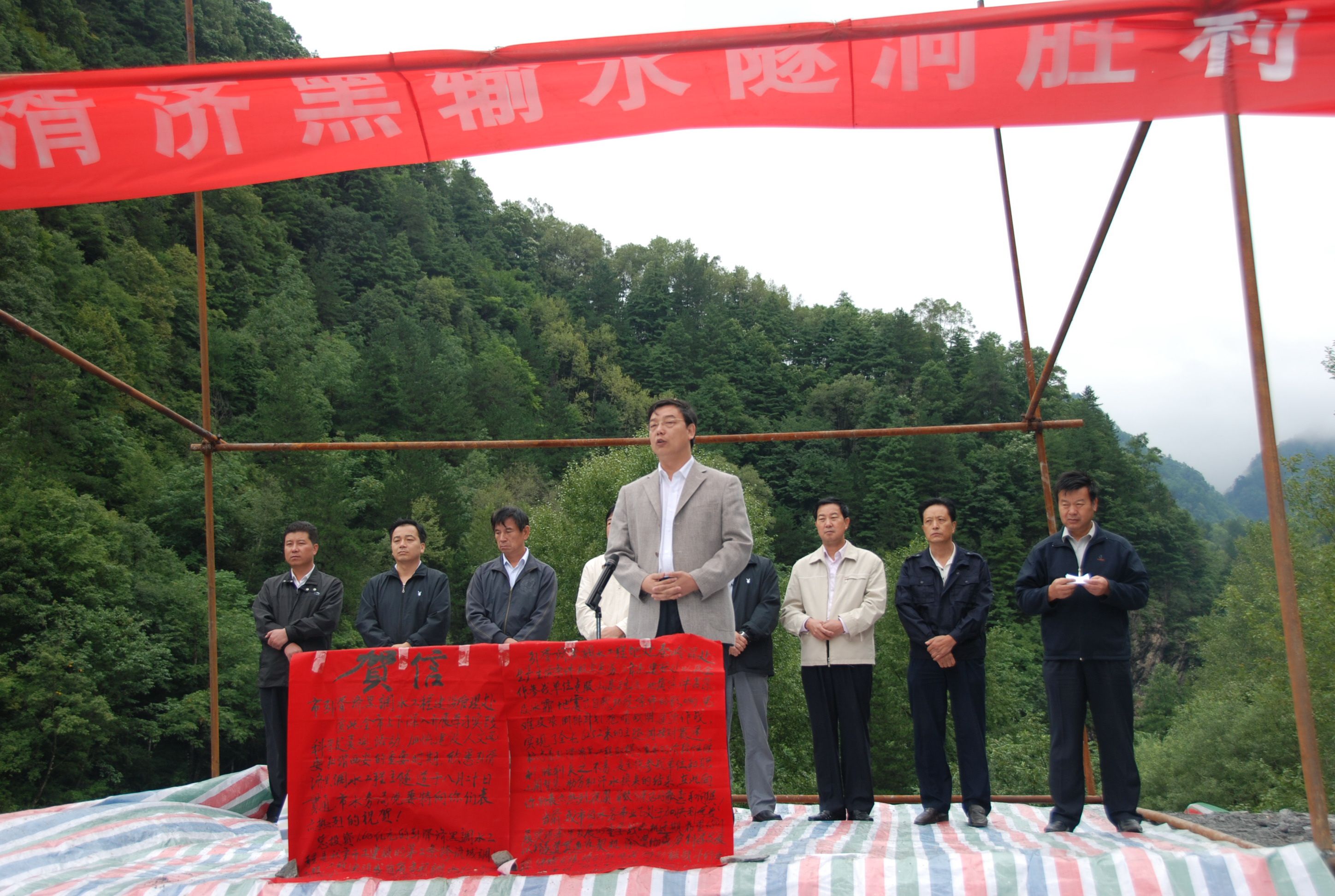 慶祝引湑濟(jì)黑輸水隧洞順利貫通儀式,公司董事長(zhǎng)王長(zhǎng)隨代表全體施工單位發(fā)言