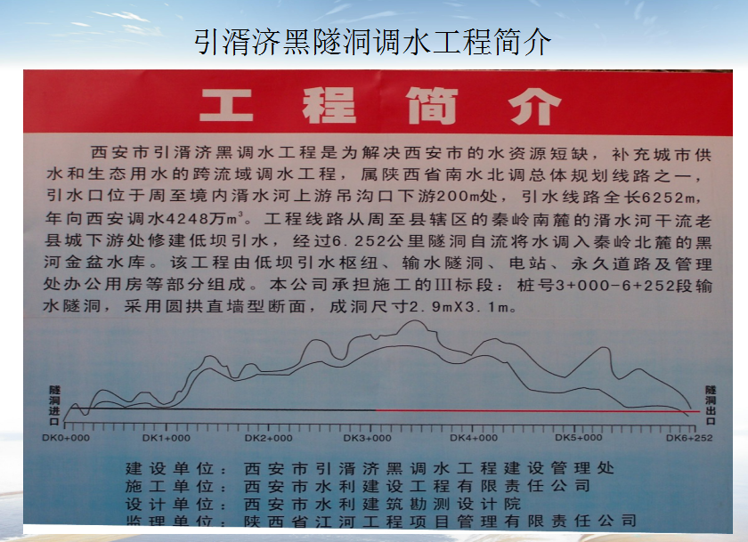 該工程屬陜西省南水北調(diào)總體規(guī)劃線(xiàn)路之一,引水口位于周至境內(nèi)湑水河上游吊溝口下游200m處,引水線(xiàn)路全長(zhǎng)6252m,年向西安調(diào)水4248萬(wàn)m3。由低壩引水樞紐、輸水隧洞、電站、永久道路及管理處辦公用房等部分組成。